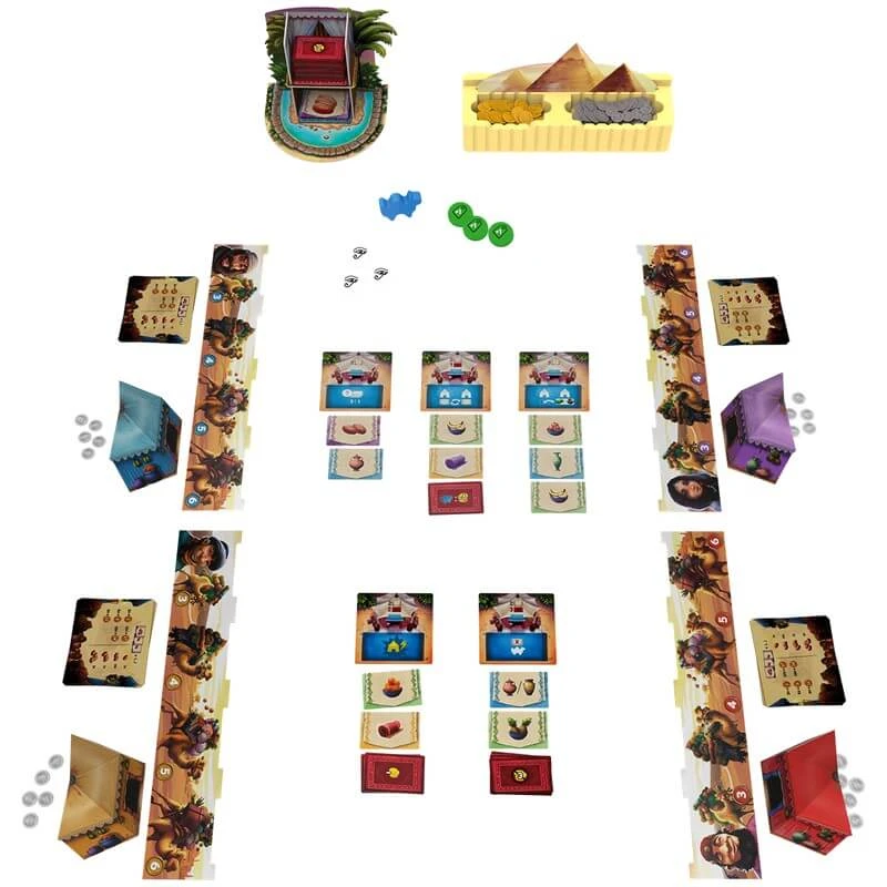 Dans Camel Up – Hors Saison, chacun des 3 à 5 joueurs possède sa propre caravane de quatre chameaux qui peuvent transporter des marchandises, les chameaux pouvant transporter 3, 4, 5 et 6 marchandises.