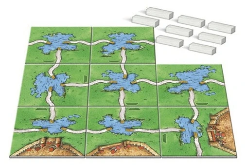 Un lac met fin à un segment de route, c’est donc pourquoi on doit y placer un ferry, peu importe si l’on a décidé de placer un partisan sur la tuile ou non.