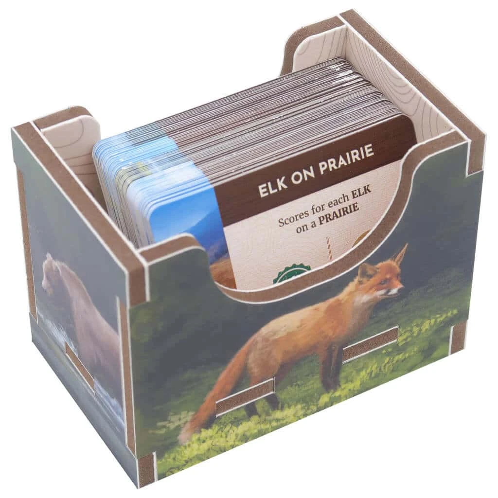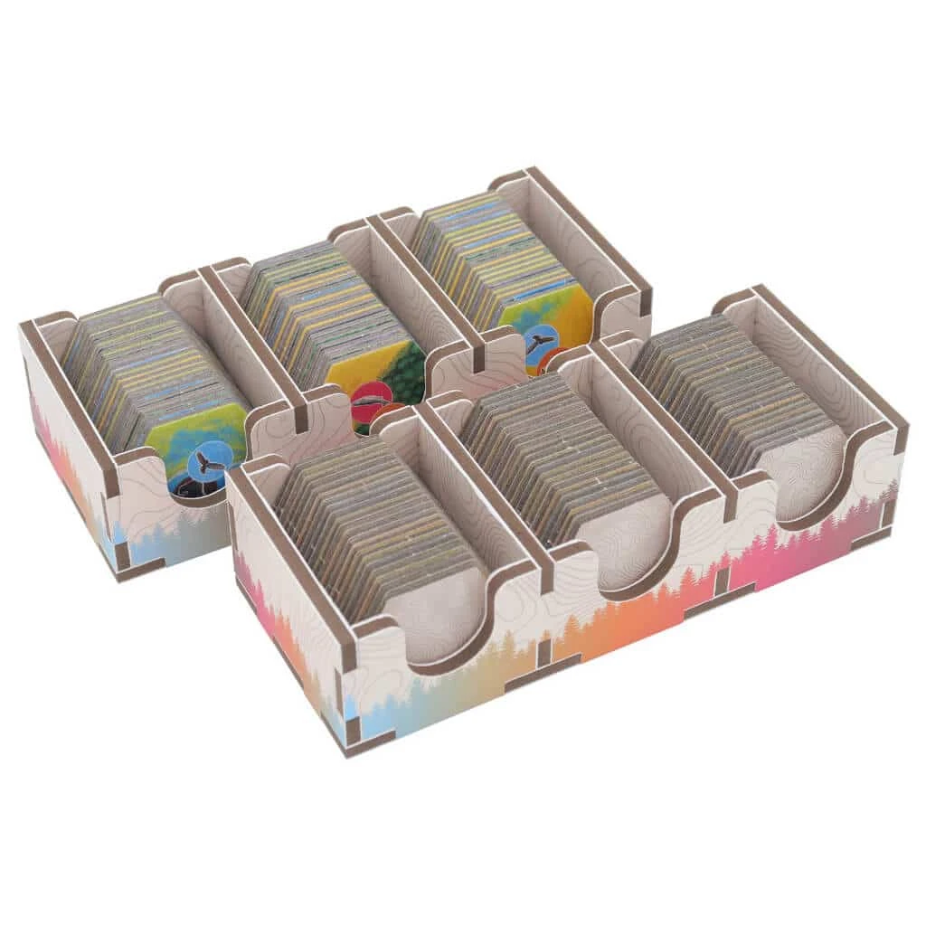 Regroupez le jeu de base et son extension Paysages dans l’ Insert Cascadia. La thématique visuelle du jeu sont reprises sur les différents compartiments du rangement.