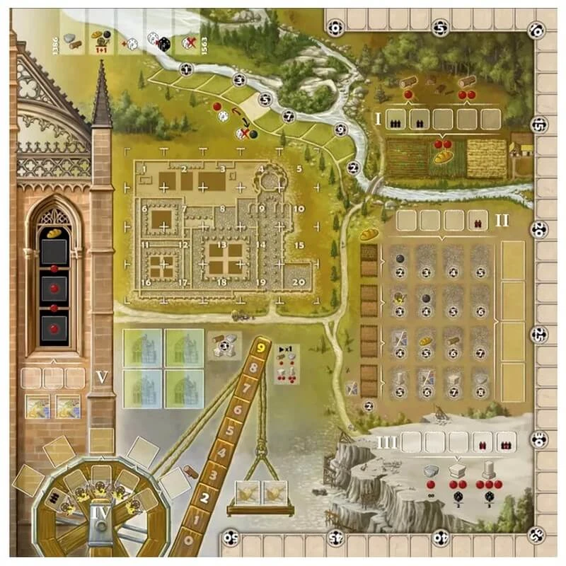 Le jeu se joue en cinq manches. Une fois que tous les dés ont été placés, les joueurs effectuent des actions dans l’ordre des zones d’action, de I à V. Ensuite, chaque joueur a la possibilité de participer à la construction du monastère. Au cours de la partie, des points de victoire (VP) peuvent être obtenus grâce aux tuiles Roi, au village et en aidant à la construction du monastère. À la fin de la partie, des PV sont gagnés pour des ensembles de différentes tuiles de maçonnerie et de vitraux inutilisés, ainsi que pour leur position sur la piste de travail. Le gagnant est le joueur qui a le plus de PV.