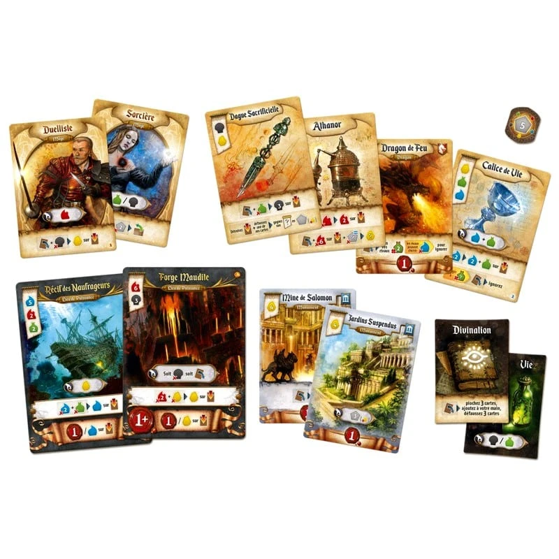 Res Arcana est un jeu simple et élégant, basé sur l’optimisation du paquet de cartes Artefact et l’utilisation judicieuse des essences magiques.