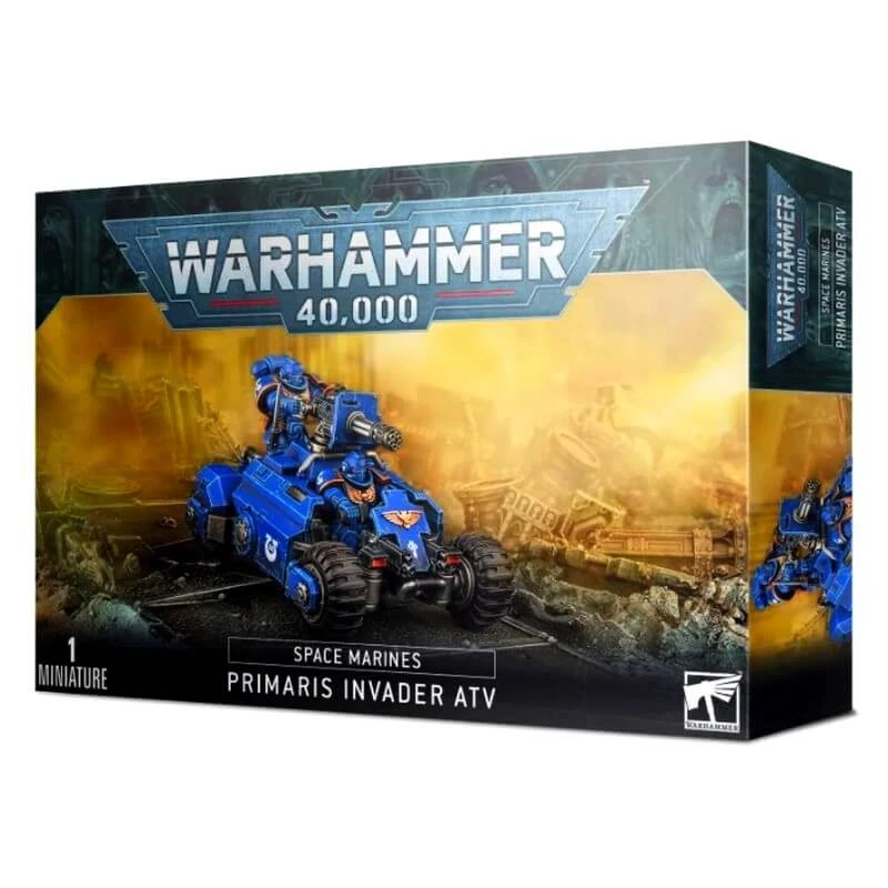 Le quad Invader des Primaris est un véhicule tout-terrain très polyvalent taillé pour la reconnaissance agressive. Équipé d’un multi-fuseur ou d’un canon gatling Onslaught, il peut rapidement fournir un tir de soutien aux points vulnérables de la ligne, ou promptement engager le combat avec les éclaireurs adverses pour les détruire.