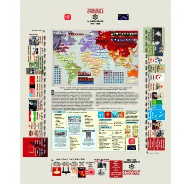 Twilight Struggle est un jeu pour deux joueurs qui simule les quarante-cinq ans d’intrigue, de prestige, et occasionnellement de flambées de violence entre l’Union Soviétique et les États-Unis.