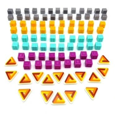 le Set d’Upgrades – Anachrony contient les différents pions du jeu en version 3D et en plastique pour une plus grande durabilité.